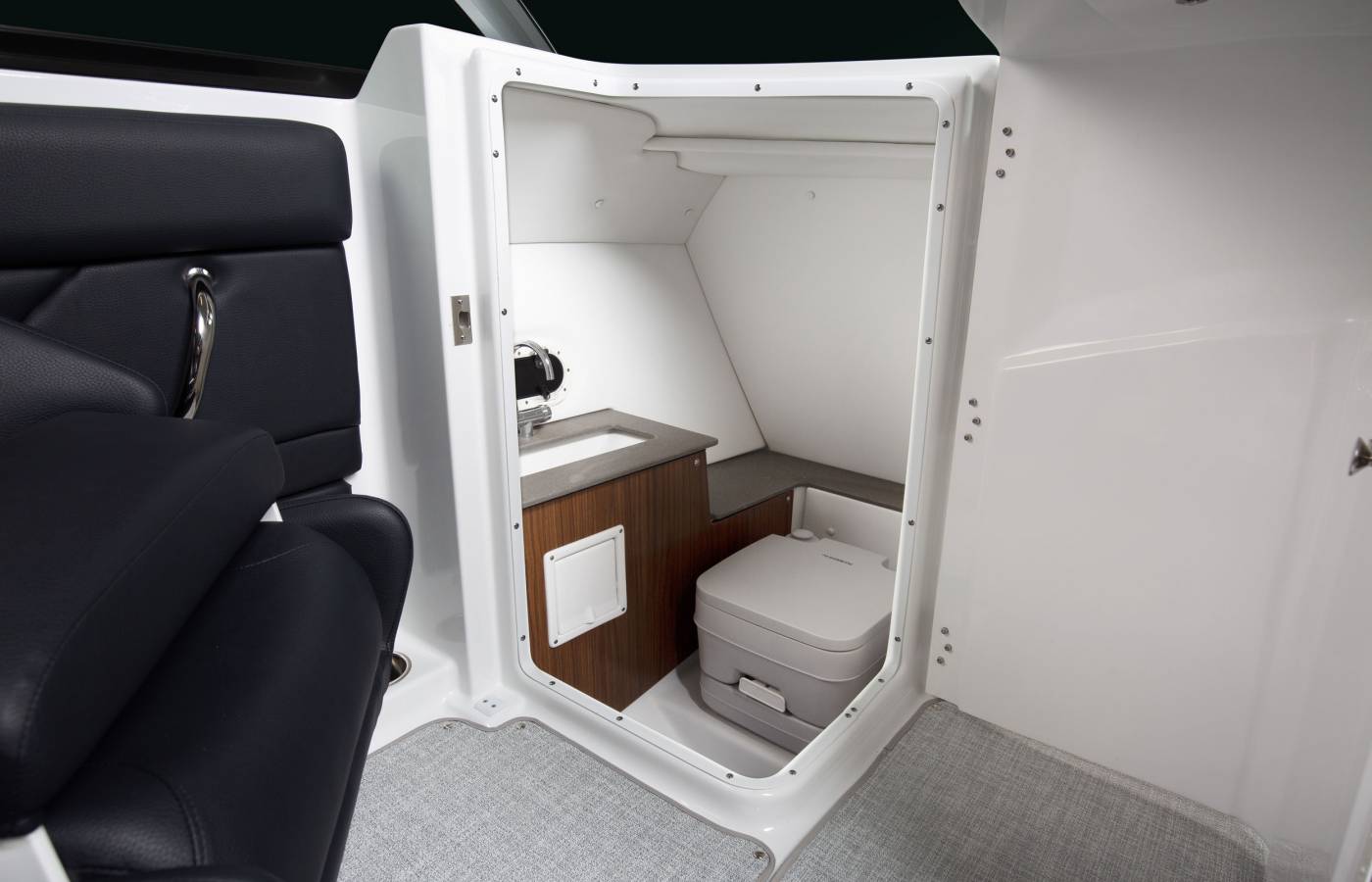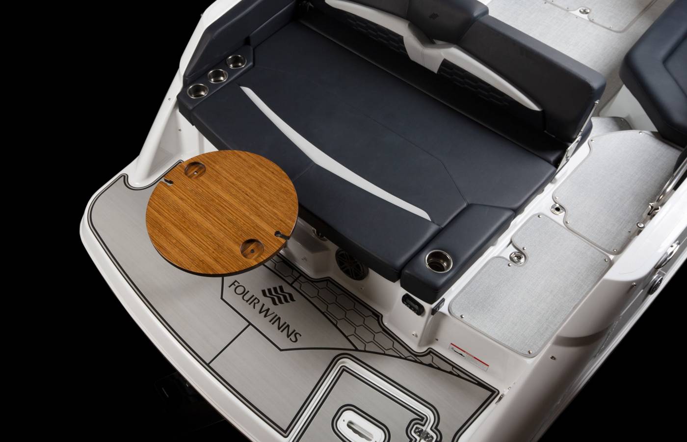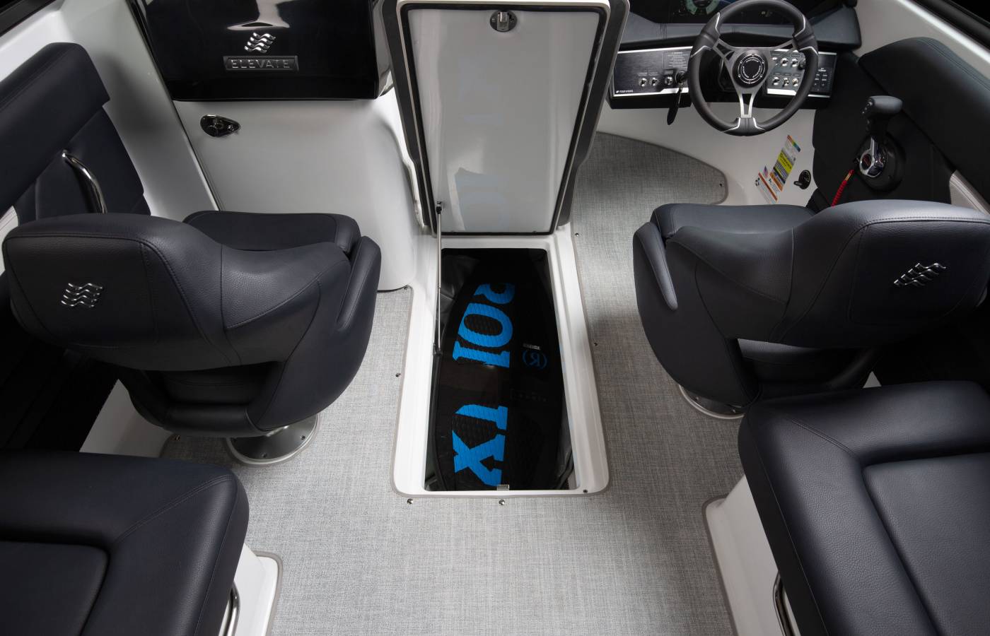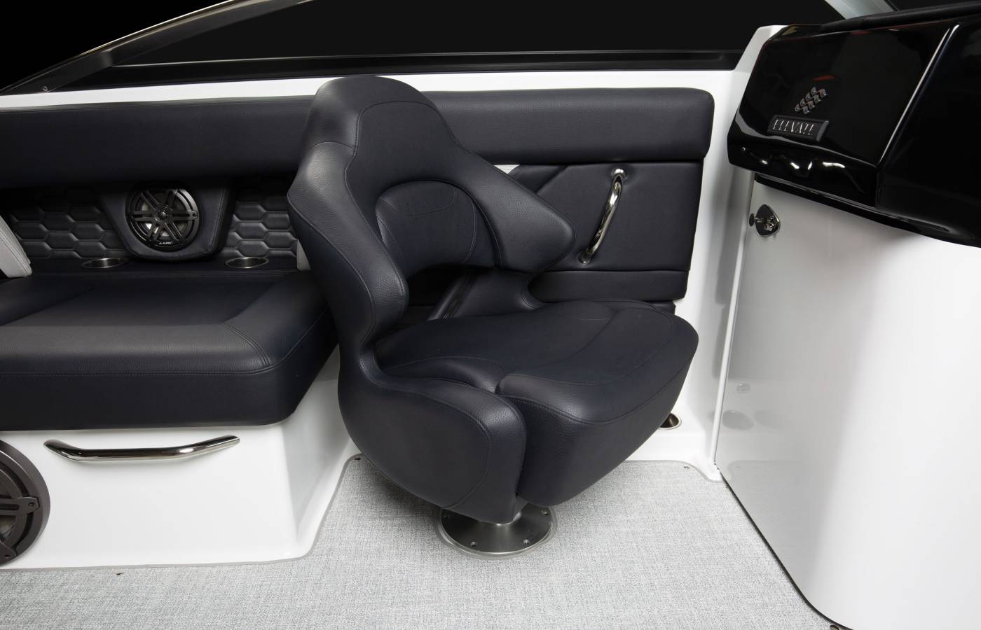 An advanced forward-facing drive adds extra bite off the line, delivers trim authority, boosts fuel economy, and keeps the prop tucked safely under the boat—peace of mind for swimmers around the platform.