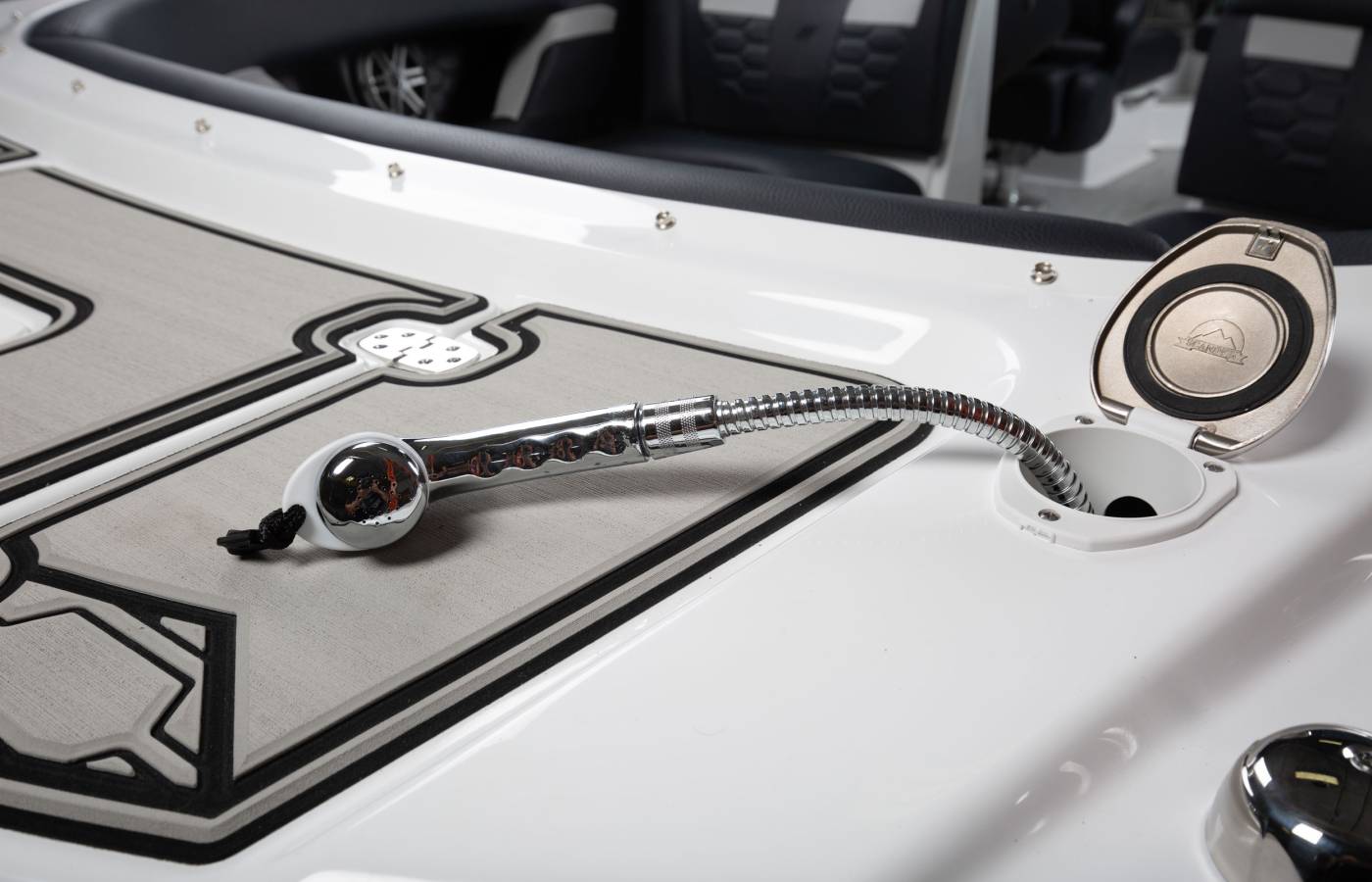 Top-of-the-line wake setup—GPS speed control, a robust wake tower, quick-fill ballast, and wake-enhancement tabs—lets you tailor every session to each rider’s style.