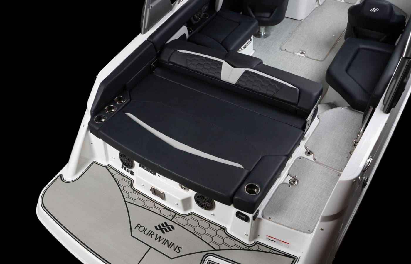 The HD5 Surf combines Four Winns’ iconic craftsmanship with advanced surf technology to deliver an unmatched on-water experience. Its optional aft swim platform creates a spacious, waterside lounge, ideal for relaxing between rides. The hybrid deck bow and signature styling preserve the HD5’s distinctive look, while the integrated ballast and surf systems produce precise, customizable waves. Designed with performance and enjoyment in mind, the HD5 Surf ensures every day on the water is unforgettable.