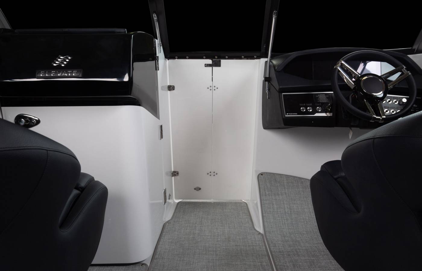 A wide, low swim platform with an integrated, telescoping ladder makes getting in and out effortless. Non-skid decking, sturdy grab handles, and a walk-through transom keep the flow smooth and safe between runs—perfect for quick rider swaps, a swim break, or gearing up for the next set.