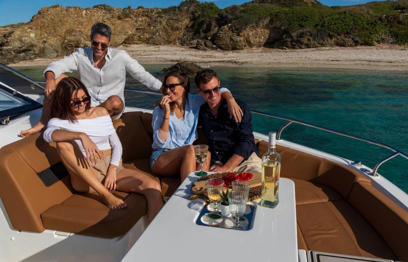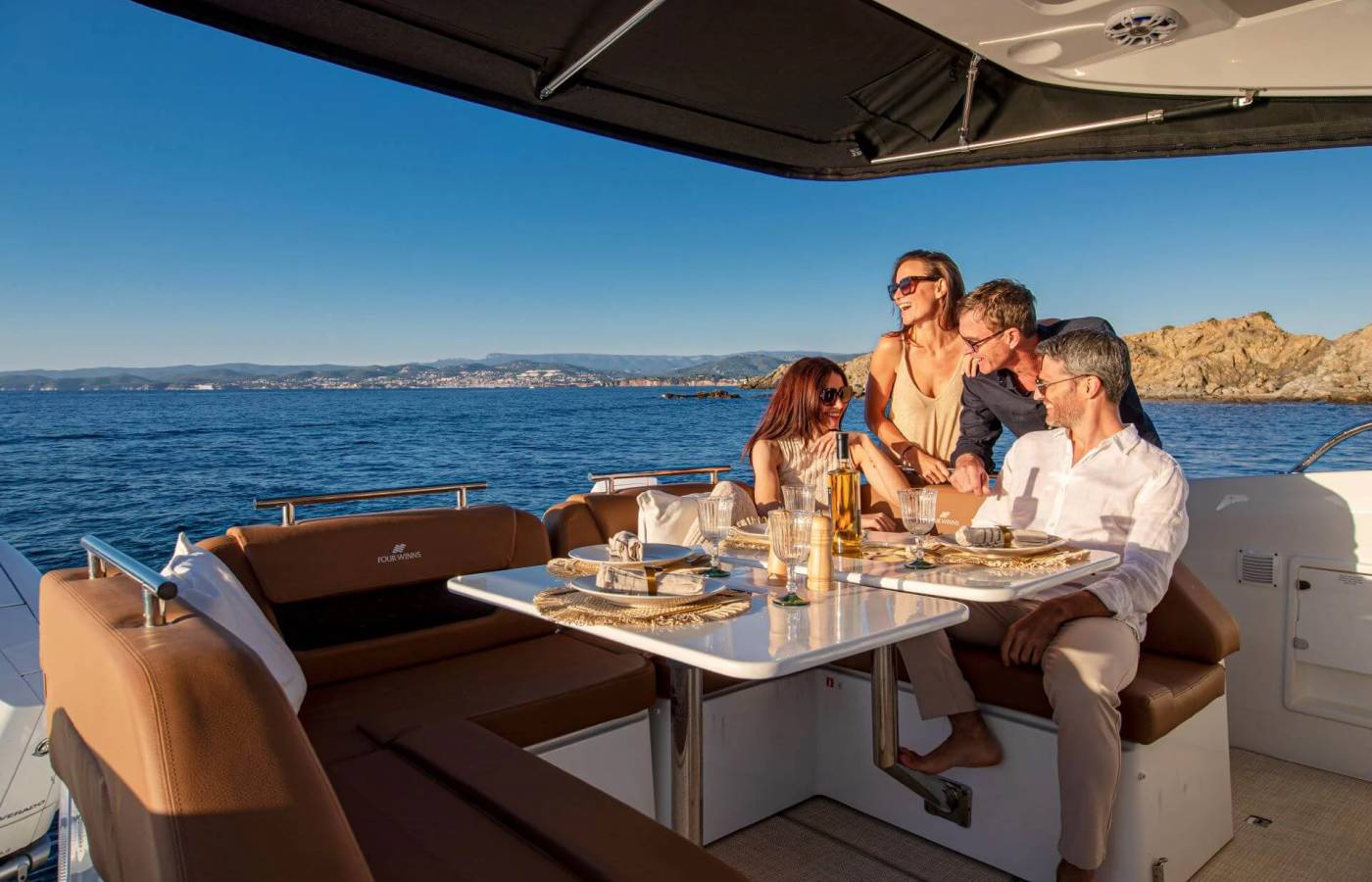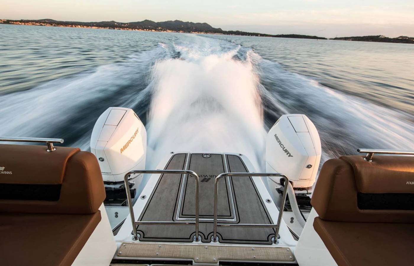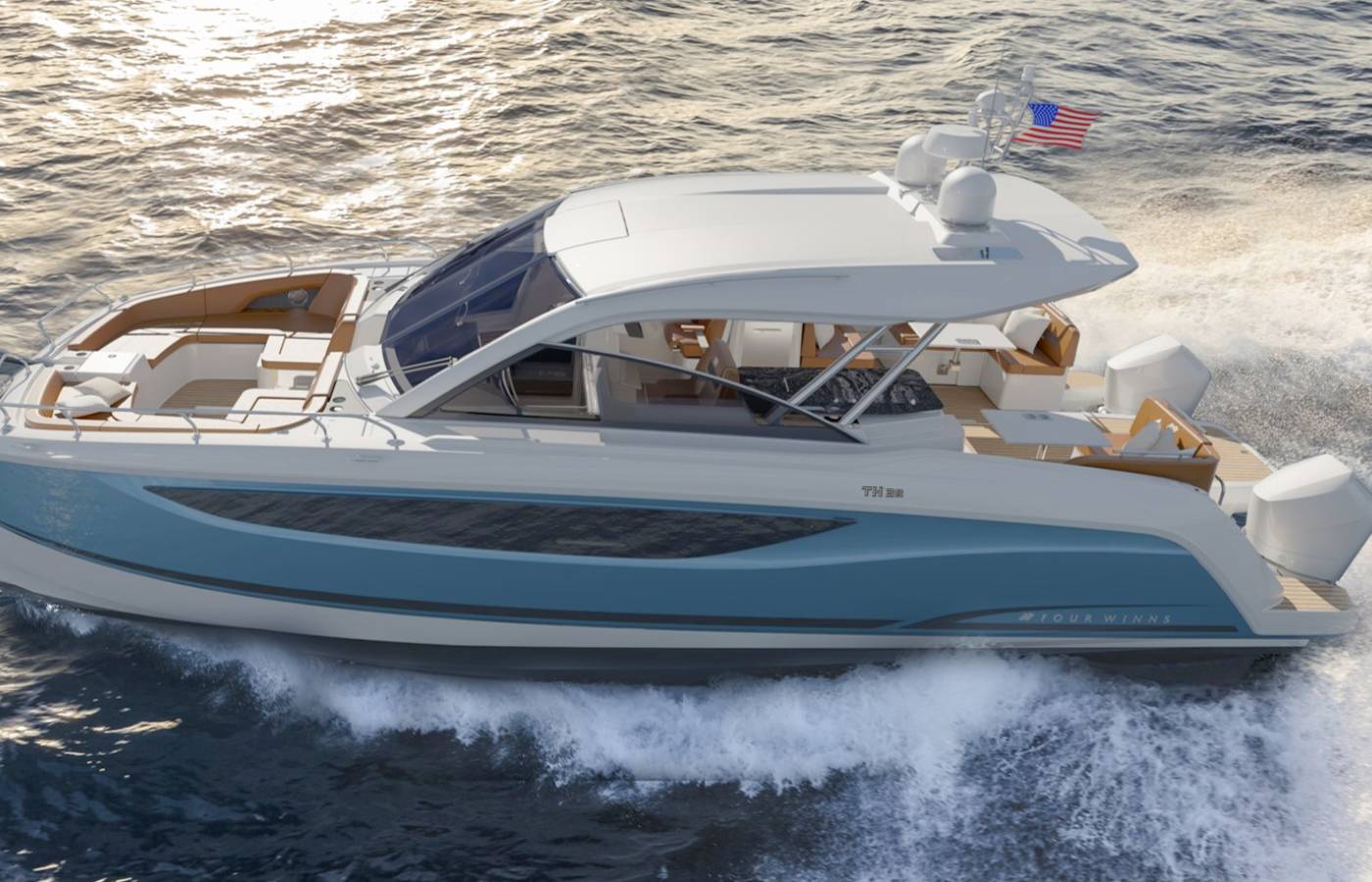 The TH38 perfectly combines the thrill of a dayboat with the elegance and comfort of a cruiser. At the helm, you have two windscreen choices: a full-height windscreen for optimal protection and all-season comfort, or a low-profile design that maximizes airflow and open-air enjoyment. With these options, including the new sport-top, Four Winns boaters can enjoy a refined and comfortable cruising experience throughout the year.