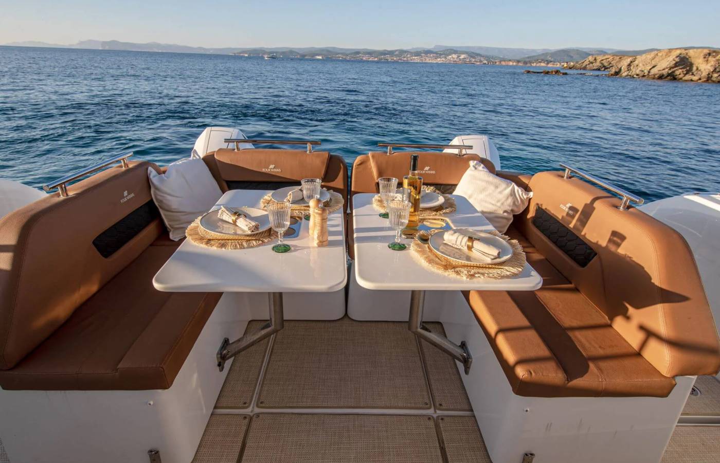 The TH38’s adaptable deck design, featuring multiple layout options and adjustable benches, allows guests to tailor their experience while moving safely along the center walkway. Whether configured as an open social area or a unified dining space, the deck transforms effortlessly to match the needs and mood of the moment.