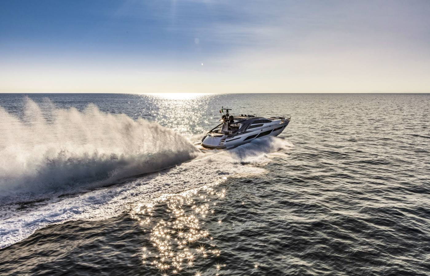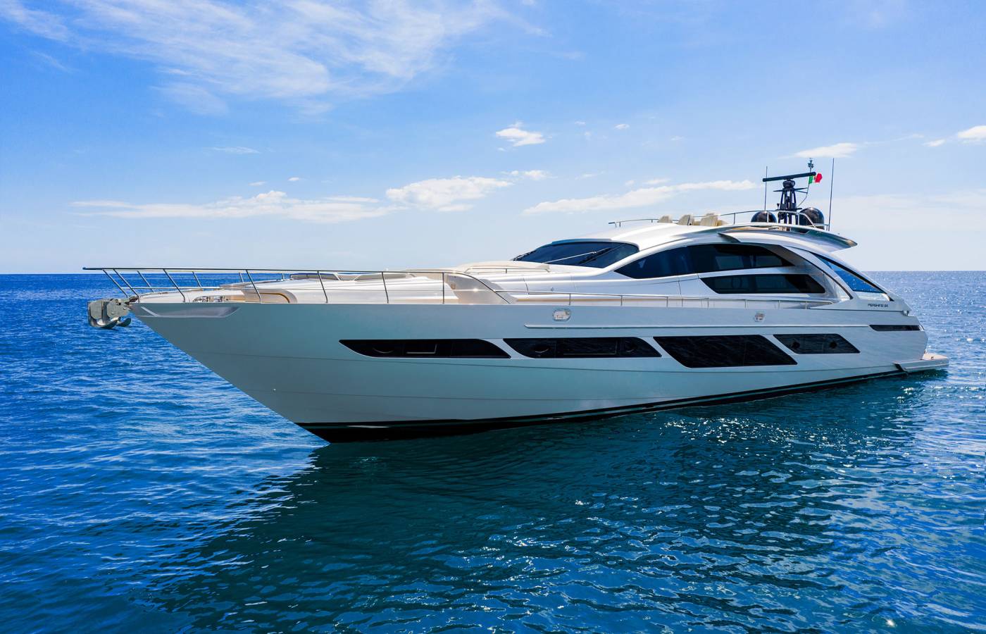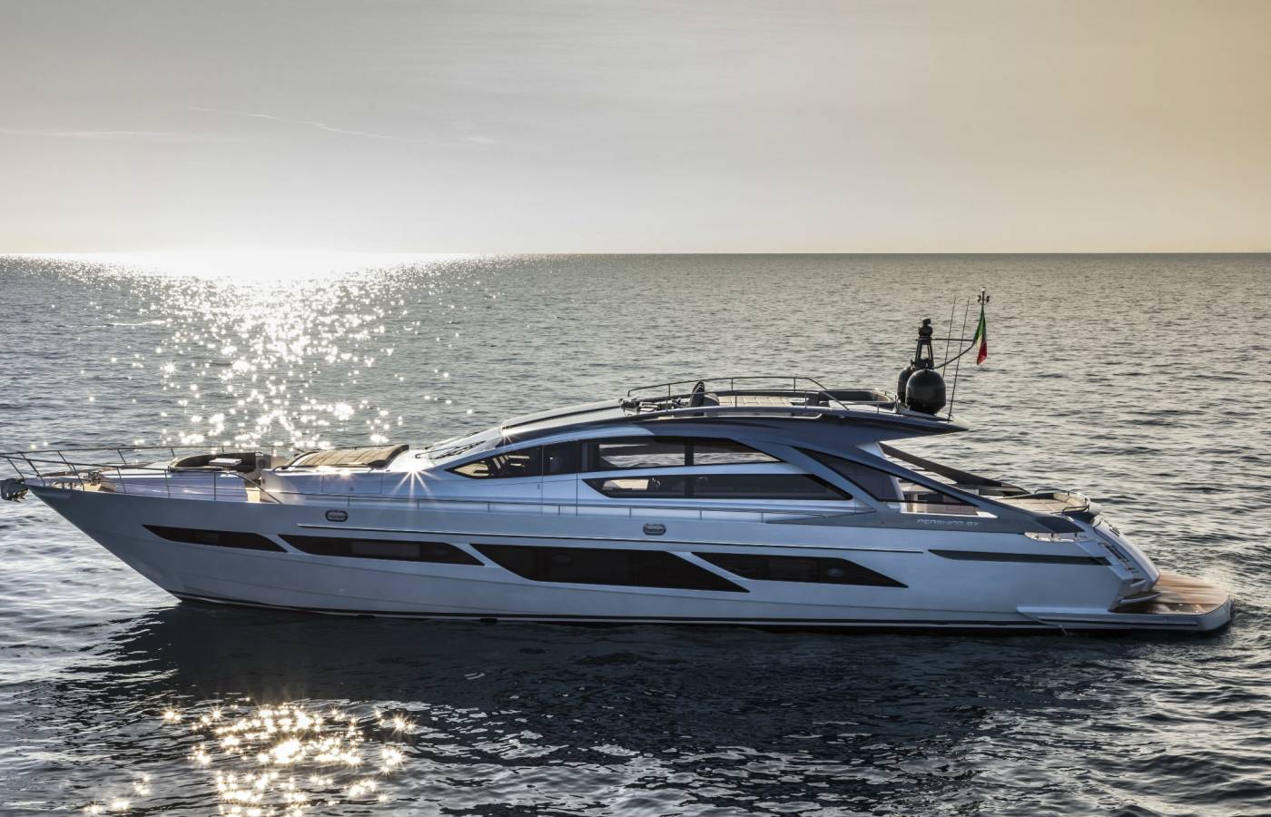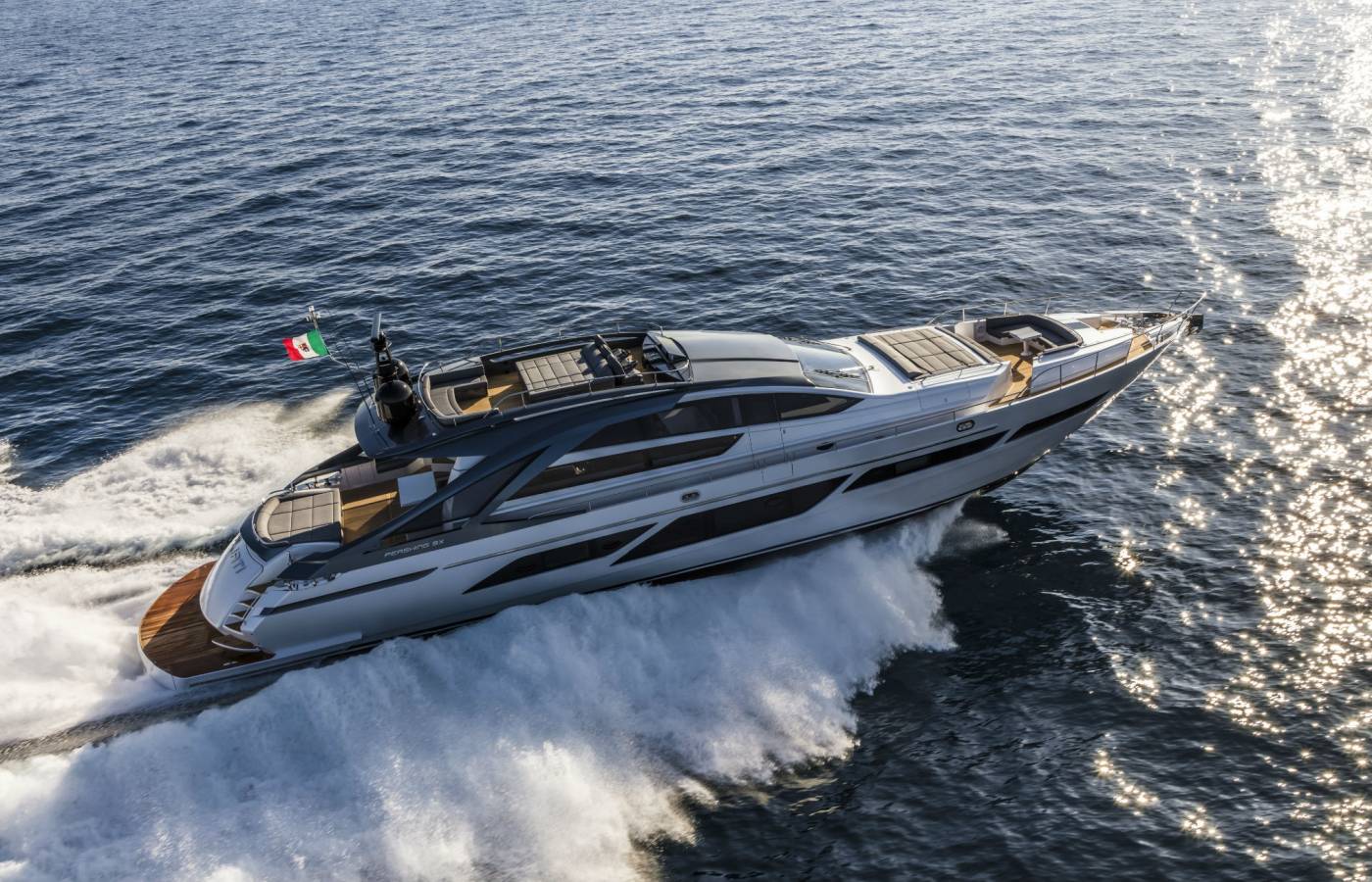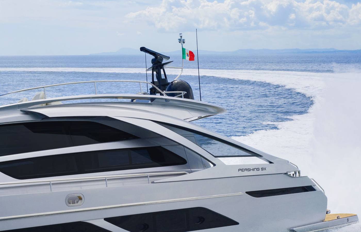 The Pershing 9X is innovative in every way, beginning from the composite materials, based on carbon, vinyl ester resin and epoxy resin. Its sporty lines are exalted by the large side wings and the aerodynamic profile of the sun deck. The open-air foredeck area and the sundeck combine supreme comfort with maximum privacy, while the interior décor stands out for elegance and sophistication.
