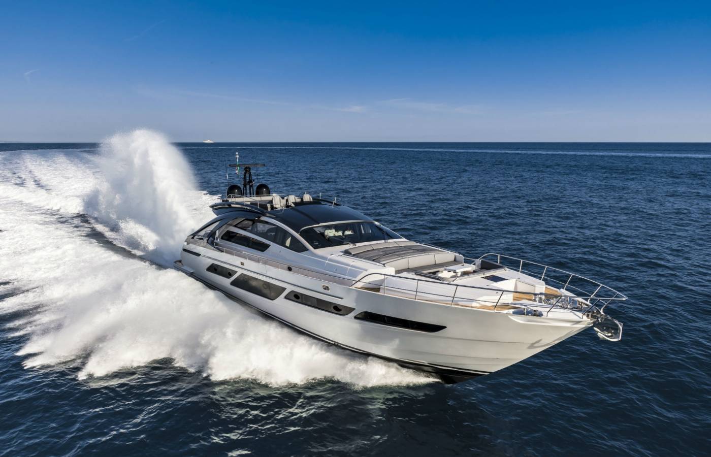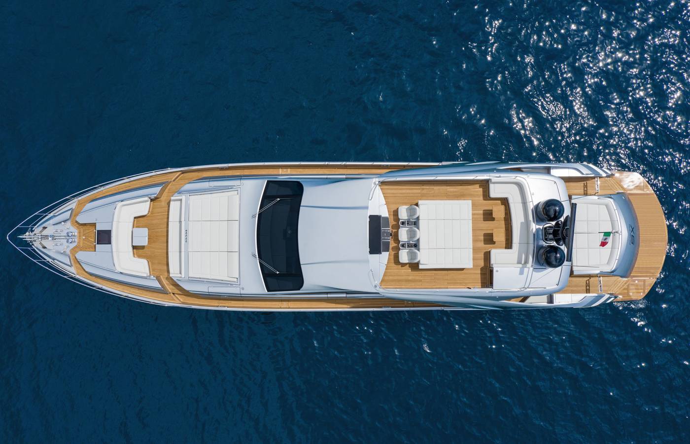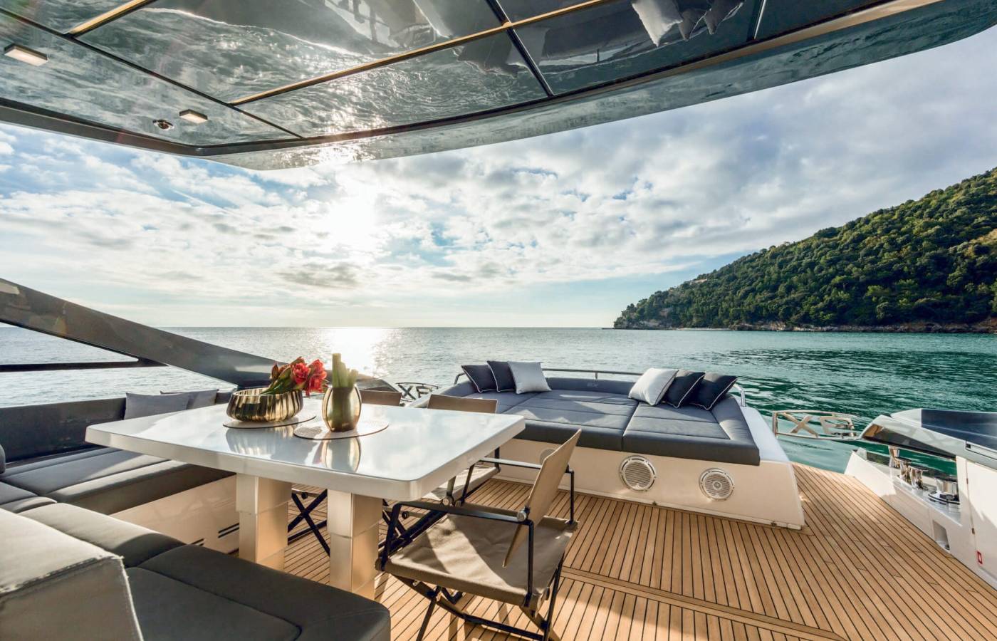 Pershing 9X combines elegance and technology to maximize on-board pleasure. The sun deck offers extremely generous spaces for relaxing thanks to a lounge dinette and a large sun pad.
