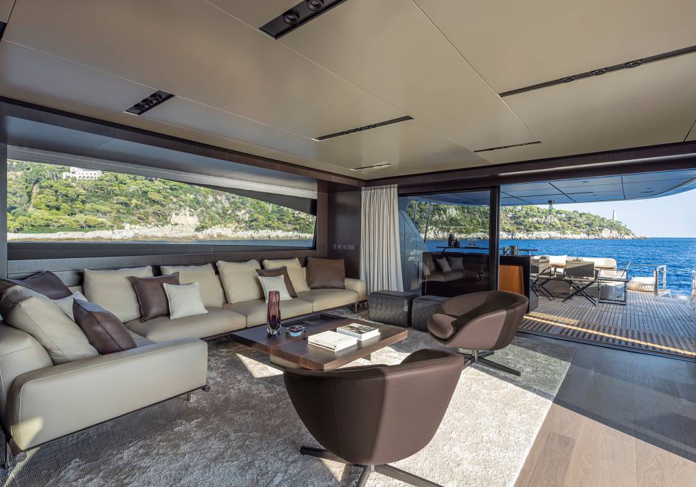 Deployed from the hull side at the touch of a button, the lateral veranda enhances the open-air experience and the pure pleasure of the sea