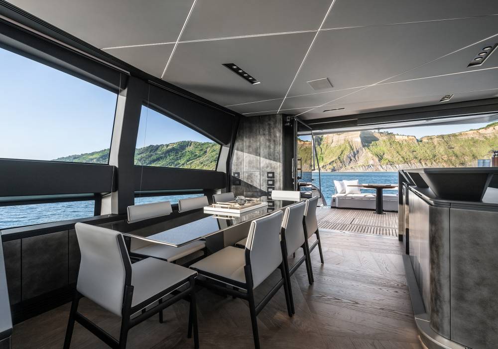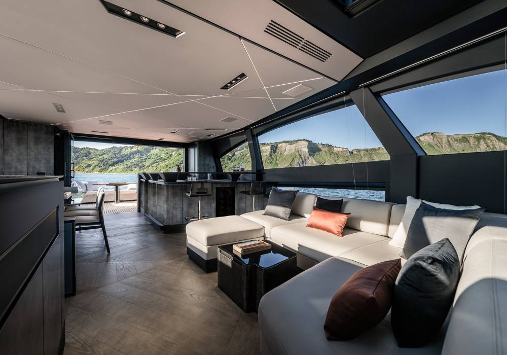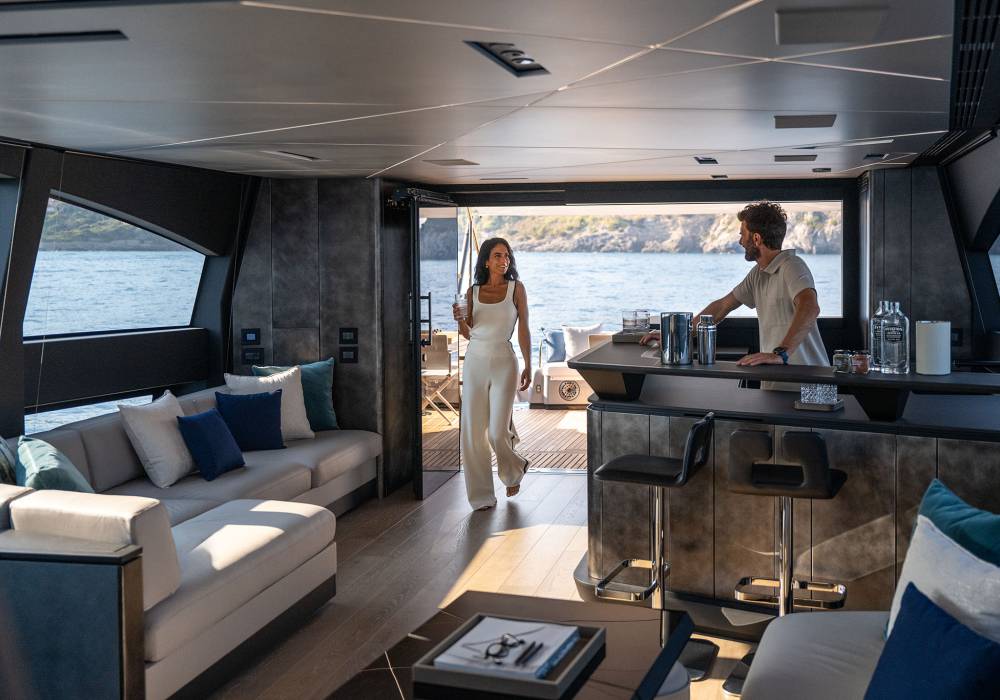 Enjoyment and fun reach new heights when the interior becomes an extension of the sea. On GTX80, the salon, galley, and cockpit flow as one continuous space, dissolving barriers with panoramic glazing, wide sliders, and sightlines that run from the helm to the horizon. Materials are tactile and modern—leather, matte lacquers, warm woods, and carbon accents—so every surface feels deliberate, every moment composed.