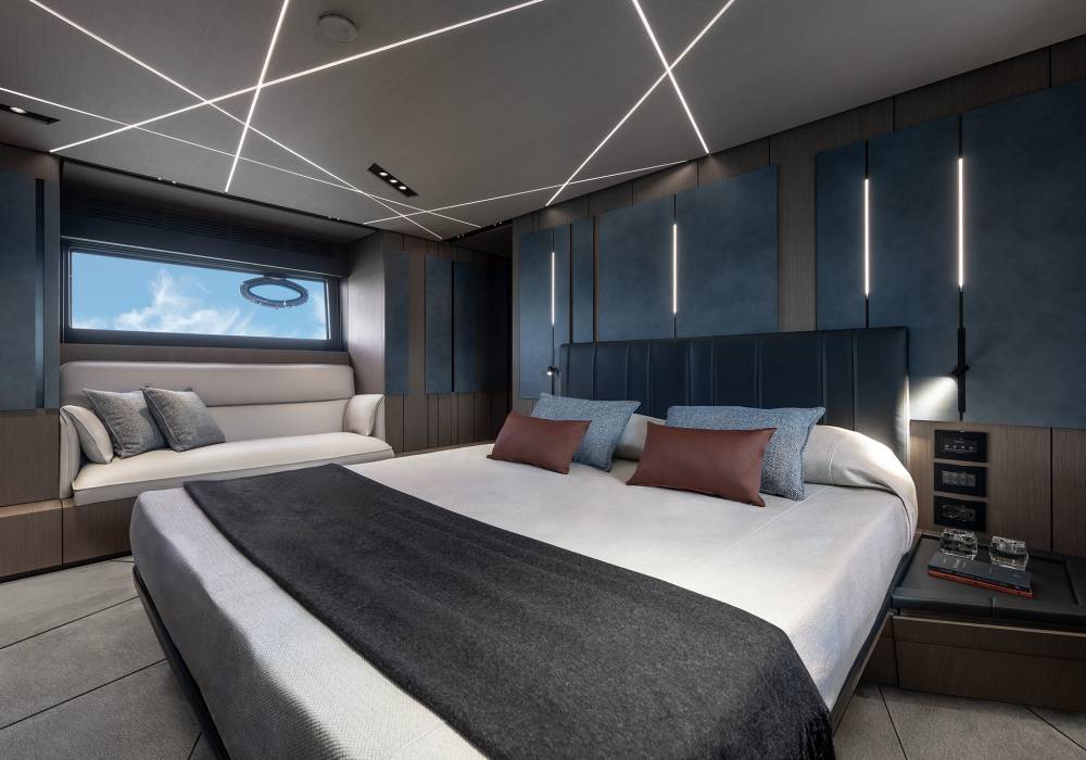 Full-beam calm with panoramic glazing, refined textures, and a spa-style ensuite—residential comfort tuned to the Pershing thrill.